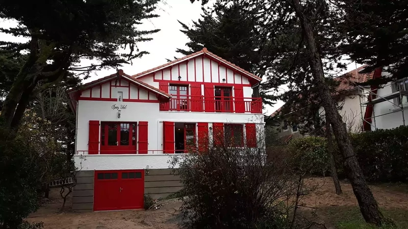 Le style basque d'origine est préservé et amplifié par l'implantation de balcons, volets, garde-corps et faux colombages.