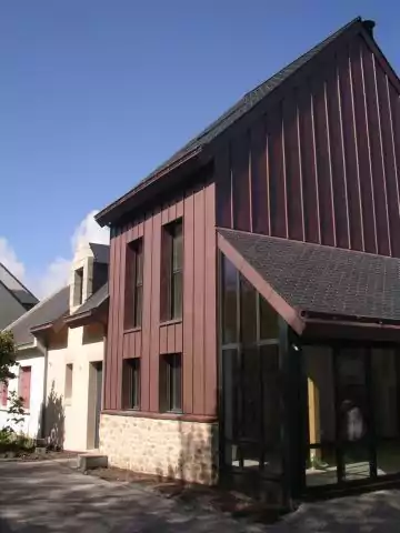 Construction d'une maison individuelle alliant maçonnerie traditionnelle, parement de moellons de granit et ossature bois revêtue d'un bardage en zinc. Construction édifiée en zone de protection du patrimoine face aux remparts de Guérande.