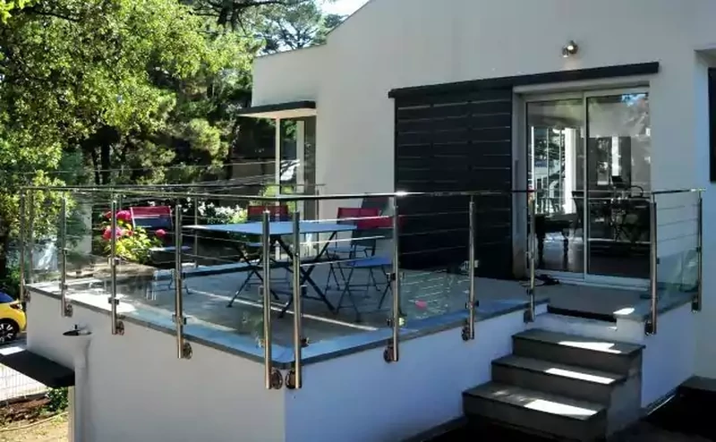 Réalisation d'une extension permettant de créer une terrasse surélevée protégée par la ramure des arbres, de réorganiser le fonctionnement de la villa et de la doter d'une esthétique plus actuelle.